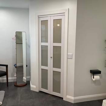 Puertas plegables, 36 "x 80" 3-Lite Puertas de armario de vidrio esmerilado templado con kit de herrajes deslizantes, puerta interior plegable para despensa
